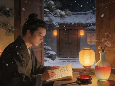 這首詩以雪夜臥床的感知為線索,通過層層遞進的感官體驗,在簡淡如話的敘述中構建出靜謐而豐盈的詩意空間。開篇“已訝衾枕冷”從肌膚觸覺的異樣切入,以“訝”字點破詩人最初的朦朧疑惑;“復見窗戶明”則通過視覺捕捉到窗外積雪反射的微光,將物理現象轉化為詩意的光感轉換。后兩句“夜深知雪重,時聞折竹聲”完成審美升華:詩人不直接描摹雪勢,而以深夜傳來的竹枝折斷聲間接烘托積雪之厚重,讓聽覺成為丈量自然力量的標尺。全詩通過“衾冷—窗明—竹折”的感知鏈條,在個人私密體驗與自然宏大運作之間搭建微妙的聯系,最終在萬籟俱寂的雪夜里,讓折斷的竹聲成為天地間唯一的話語,完成了一場只有詩人醒著的宇宙獨白。