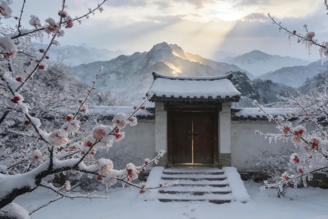 這首作品以雪后山居的晨景為框架,在清寒物象的凝練組合中寄托了文人孤貞自守的精神境界。開篇“晨起開門雪滿山”以樸素的敘事展開銀裝素裹的視覺震撼,“雪晴云淡日光寒”則進一步渲染澄澈而凜冽的光感氛圍,寒日淡云為畫面敷設了冷色調的基底。后兩句“檐流未滴梅花凍”捕捉到屋檐冰凌將滴未滴的瞬間與梅枝凝凍的靜態,以“未滴”和“凍”字將冬日的凝固感推向極致;結句“一種清孤不等閑”卒章顯志,將前文所有清冷意象收束為“清孤”二字,而“不等閑”的斷語,使這種孤獨超脫了世俗價值評判,升華為主動選擇的精神標高。全詩通過“雪滿山—日光寒—梅花凍—不等閑”的意象遞進,在簡凈如白描的筆觸里,讓物理世界的嚴寒與精神世界的孤傲達成共振,最終在冰晶與寒梅的交映中,完成了對遺世獨立人格的詩意塑形。