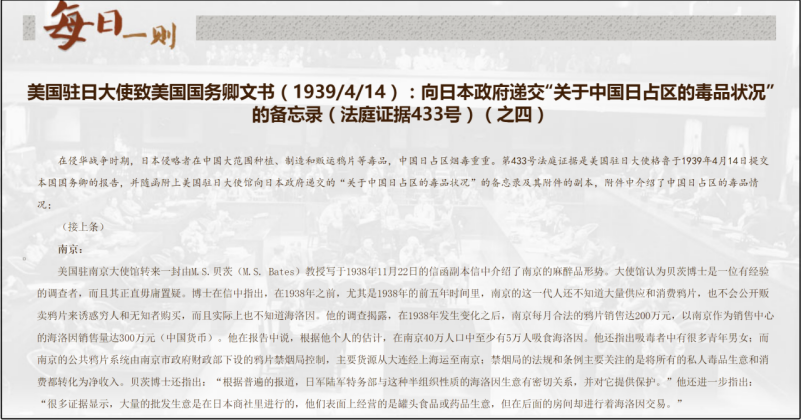 1938年11月,金陵大學美籍教授貝德士,對南京毒品泛濫的情況進行數月的認真調查,后來得出結論:——當時的南京約有5萬人吸海洛因,相當于八分之一的南京人口。