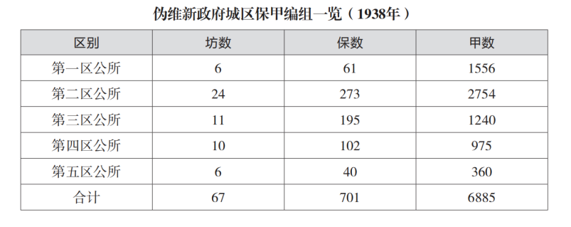 而每家必須出壯丁一名,編成保甲團,協助日偽軍警維持治安。日偽當局,通過保甲制度,使市民迫于株連的壓力相互間實施監視,以控制淪陷區人民的一舉一動。
