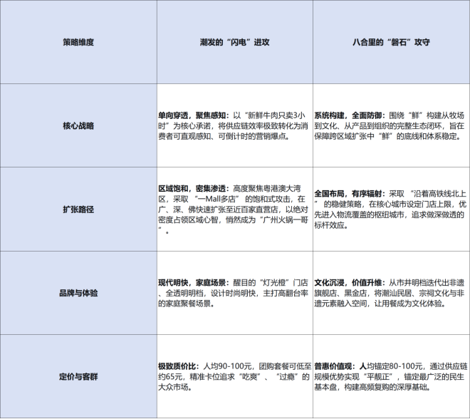 面對這般聚焦而迅猛的側翼進攻,已建立全國性版圖的八合里,并未被輕易撼動。相反,它憑借一套早已構筑成熟、且與挑戰者涇渭分明的戰略系統,上演了一場精彩的“攻守道”。