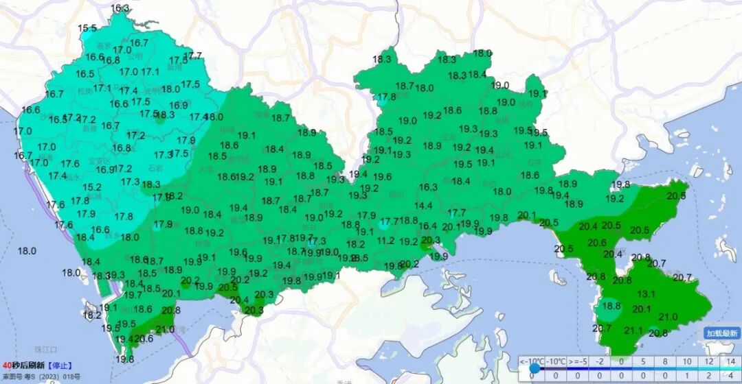 今天下午,深圳部分地區(qū)氣溫已經(jīng)降至15-16℃,而廣州部分地區(qū)甚至降至了12-13℃。