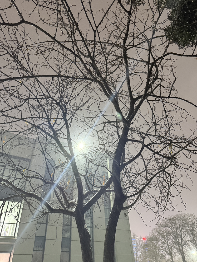 深夜的圖書館大門,是校園里最溫暖的坐標(biāo)。暖黃的燈光從玻璃門里漫出來(lái),在地面鋪成一片溫柔的光暈。晚歸的學(xué)子推門而出,指尖還帶著書頁(yè)的墨香,抬頭時(shí)能看見路燈下飄著的細(xì)雪,落在肩頭,像時(shí)光遞來(lái)的一封溫柔信箋。圖書館的燈徹夜亮著,如同經(jīng)貿(mào)校園里永不熄滅的守候,在冬日的黑夜里,為追夢(mèng)的人留著一方光亮。