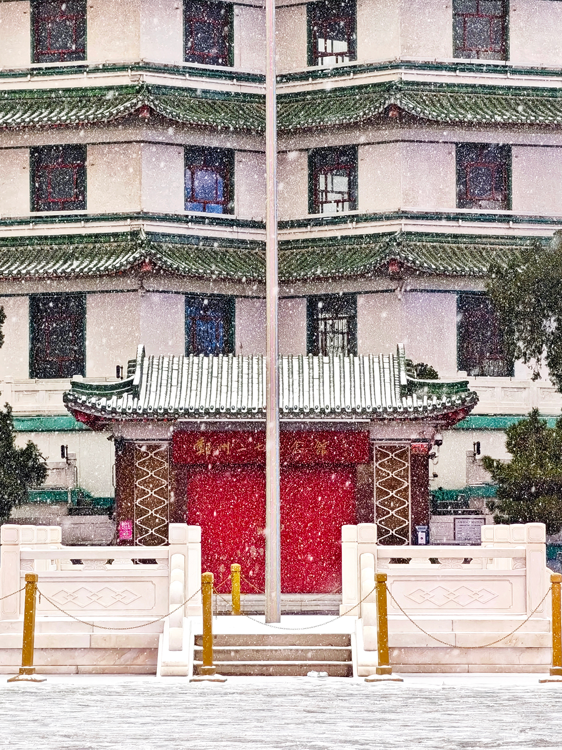 潔白的雪,似在輕訴對往昔英烈的緬懷;飄落的雪片,如肅穆的哀思,致敬那段波瀾壯闊的歷史。