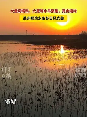 12月17日,禹州市朱閣鎮鄭灣水庫,水鳥翔集,景色怡人。近段時間,大量斑嘴鴨、大雁等水鳥聚集灣水庫覓食、休憩,構成一幅獨特的冬日美景。#自然之美 (簽約攝影師:趙松偉)