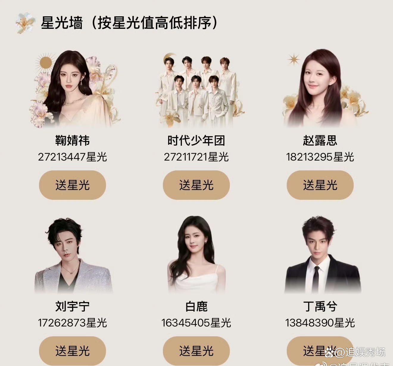 不過,另有數據顯示截至13日,鞠婧祎實際星光值約1311萬,位列總榜第三,劉宇寧1344萬第一,未持續占據榜首。