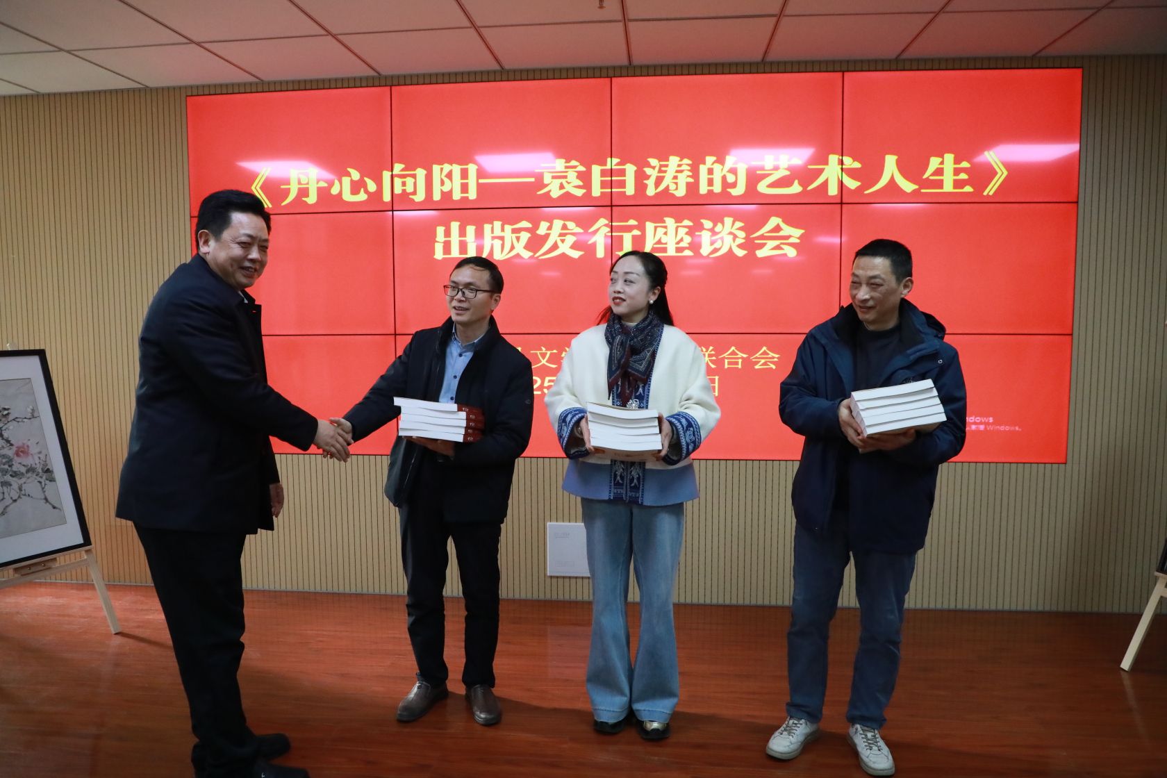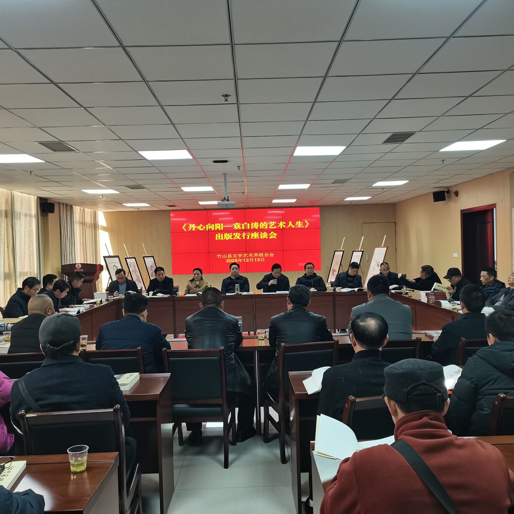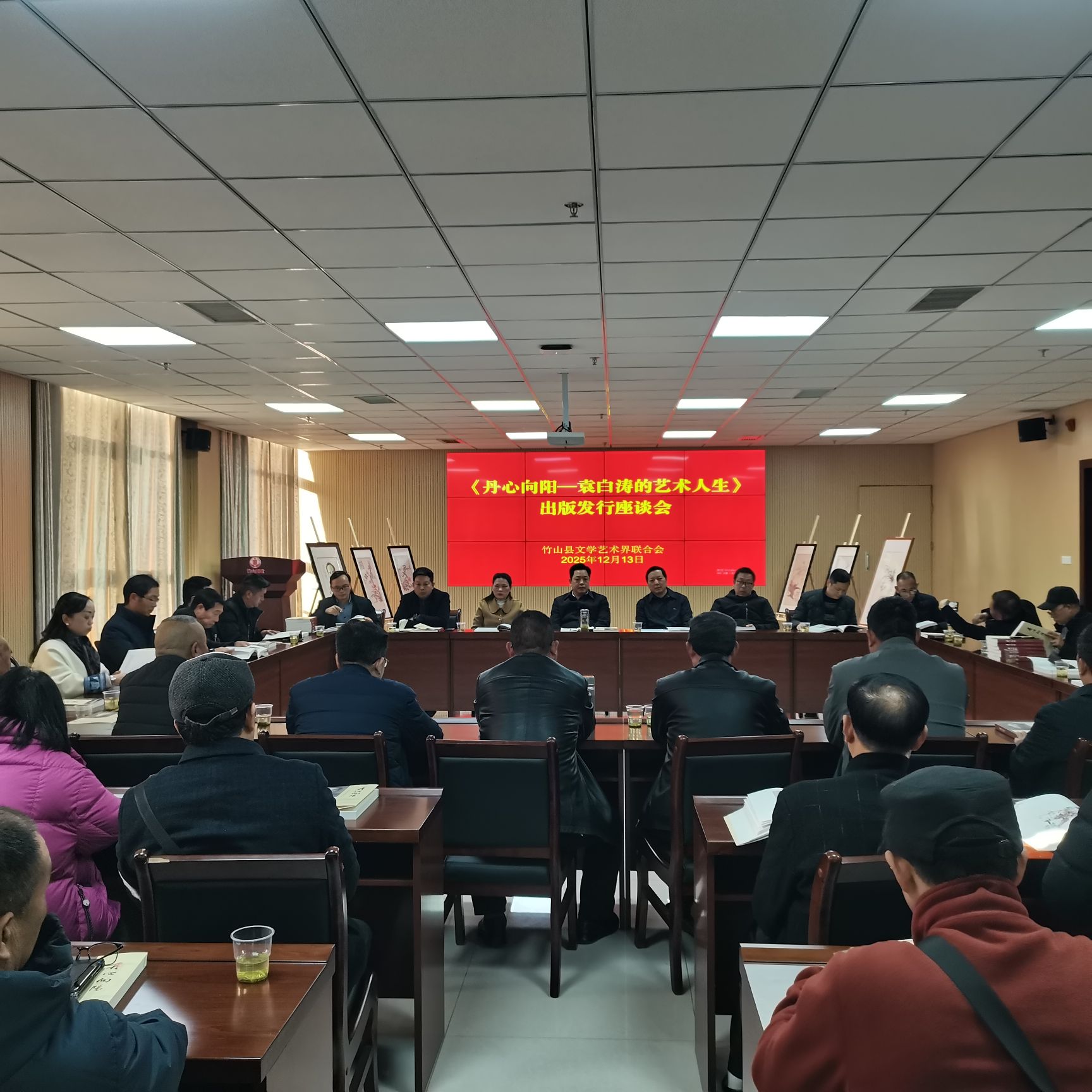 12月13日下午,《丹心向陽——袁白濤的藝術人生》出版發行座談會在竹山縣民政局12樓會議室隆重舉行。來自全縣文藝界、史學界、檔案系統的愛好者代表共50余名齊聚一堂,共同追憶早期中共黨員、著名國畫家袁白濤先生革命與藝術交織的光輝一生,深入探討該書在傳承紅色基因、弘揚民族精神方面的深遠意義。