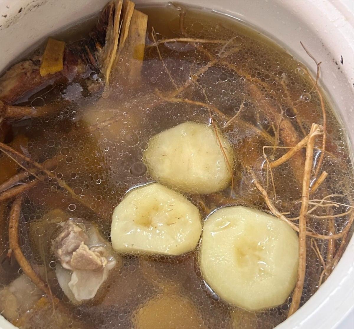 食材:排骨、馬蹄、五指毛桃、陳皮、生姜、鹽