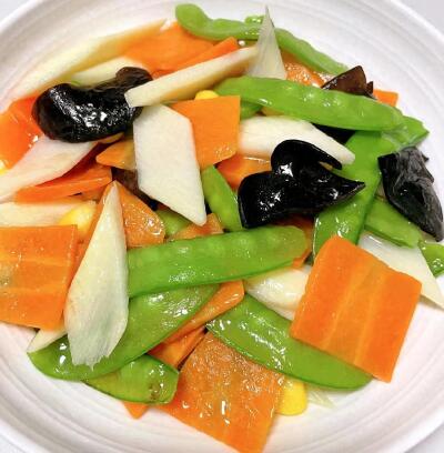 底油爆香蒜片,下萵筍大火翻炒至斷生。