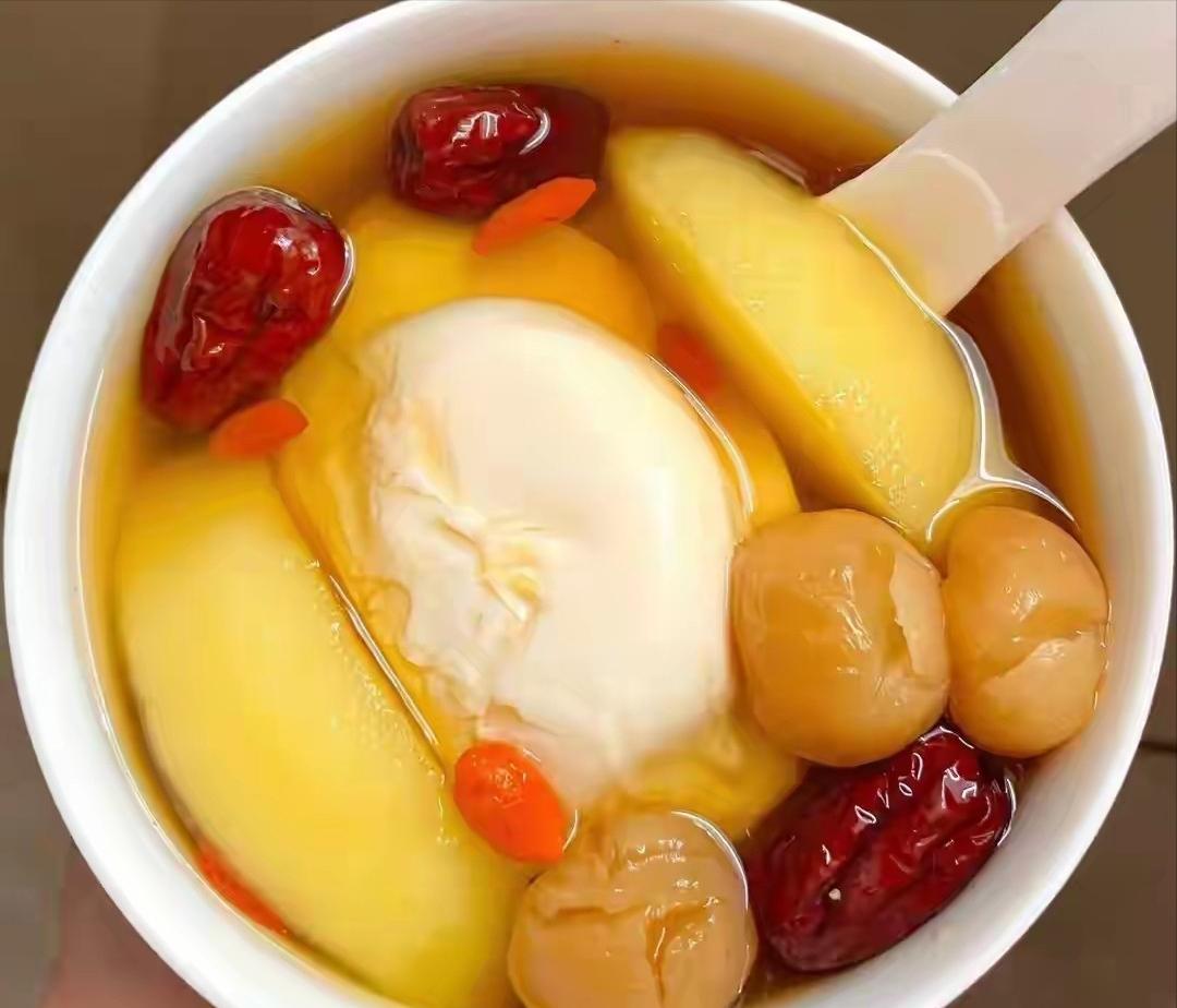 鍋里加水煮沸,打入雞蛋煮成溏心蛋,再放入蘋果塊、桂圓肉,煮到桂圓軟爛,加紅糖調(diào)味。桂圓安神助眠,雞蛋補充優(yōu)質(zhì)蛋白,熬夜后喝一碗,幫你趕走倦容,臉色越喝越紅潤。