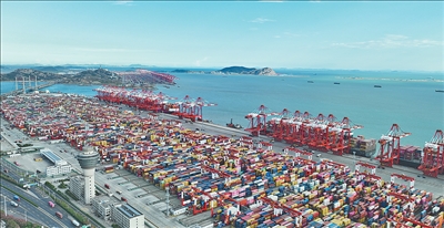 1至11月,上海港集裝箱吞吐量達5056萬標準箱,同比增長6.7%。今年較去年提前一個月突破5000萬標箱大關,全年有望沖擊5500萬標箱新紀錄,上海港將連續16年位居全球第一大集裝箱港口。圖為上海洋山深水港繁忙的作業景象。