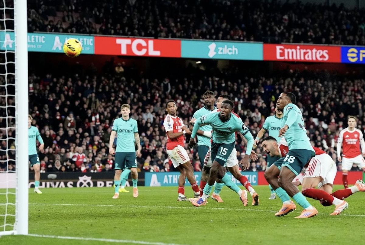 這是個烏龍球。阿森納戲劇性地取得1-0的領先。