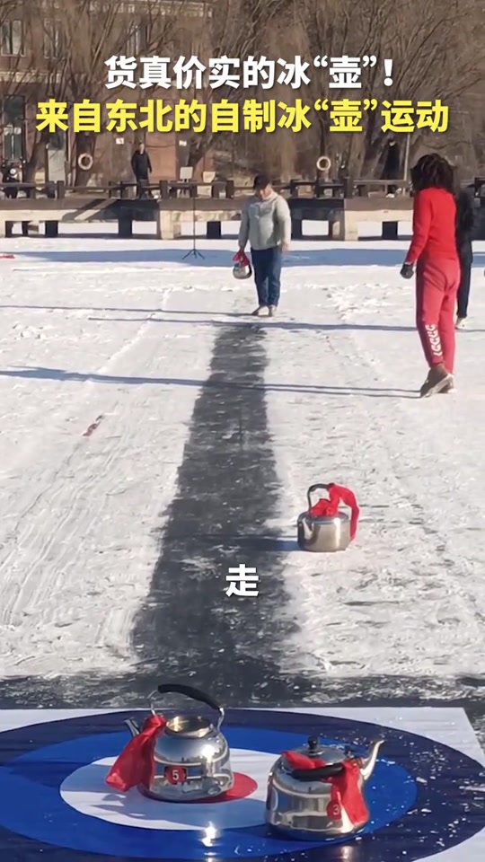 真·冰“壺”!#來自東北的自制冰壺 網友:前面擦冰的人呢?(來源:網友@用戶隨風 )