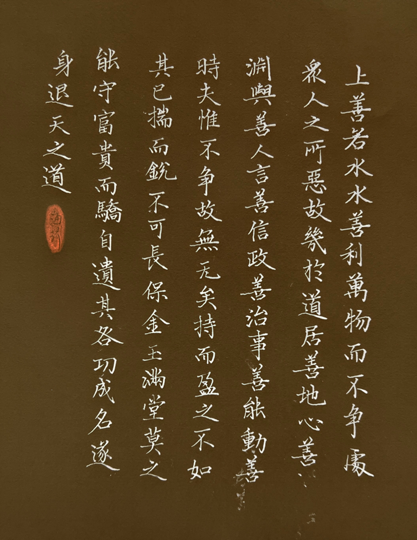 古往今來,人們對著"上善若水"總有說不完的話。有人從里面讀出了君子的利他心,覺得水滋養萬物不求回報,恰是待人處世的本分;也有人偏愛它"處下"的智慧,說真正的強大從不是爭高低,而是像水一樣在低處積攢力量;連帶兵打仗的人,都能從水的靈活里悟出兵法——水沒有固定形狀,做事也該懂得變通。也難怪大家總愛把它寫成書法掛在墻上,或是畫進畫里,它藏著的道理太實在了:既有不跟人爭長短的豁達,也有默默付出的溫柔,還有順應形勢的清醒,每一點都戳中了人心里對"好"的向往。