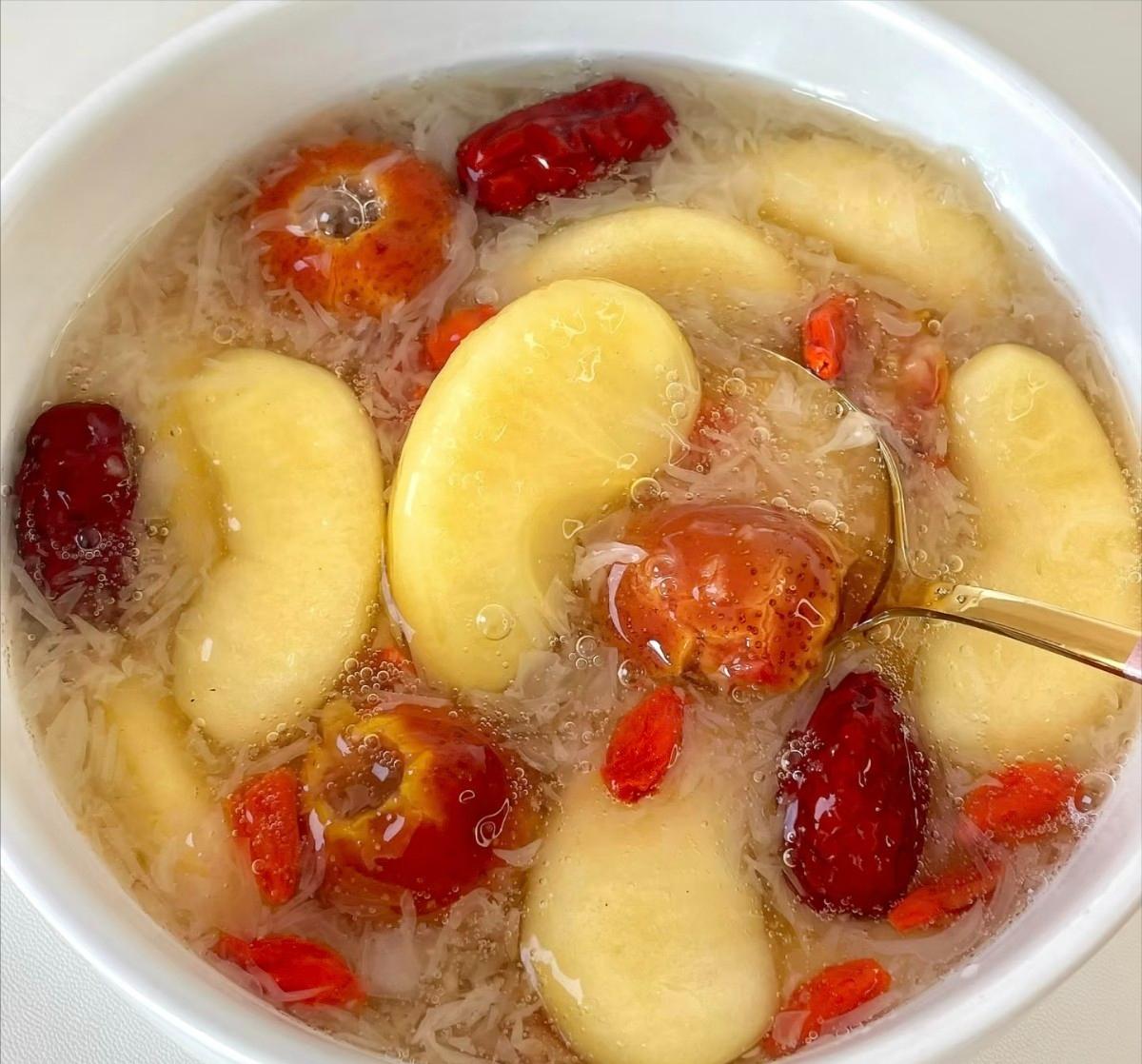 2. 銀耳、蘋果、山楂、紅棗一同下鍋,加足水。