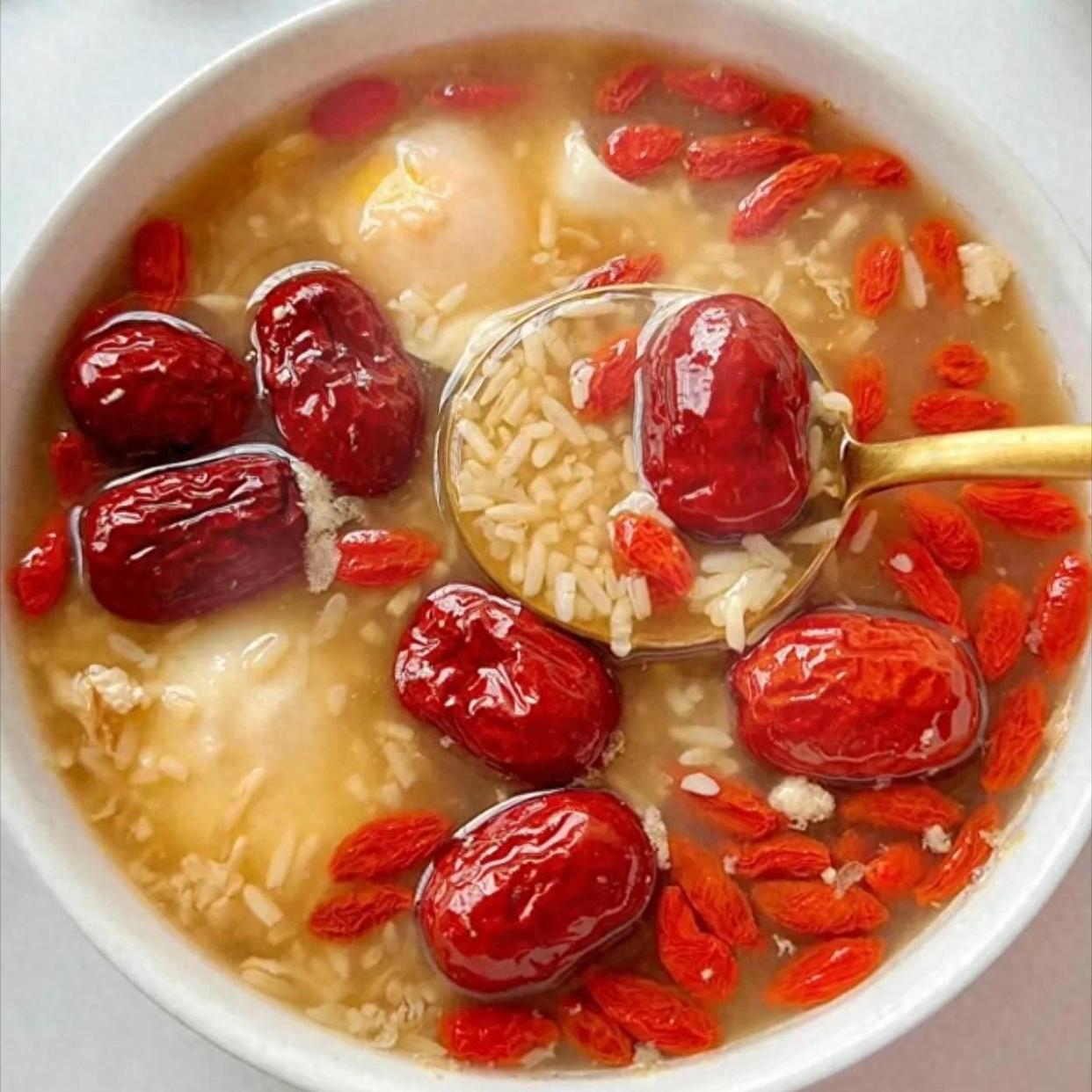 枸杞滋養肝腎,酒釀溫陽暖身,雞蛋補營養,三者搭配煮成甜湯,香甜溫潤、入口順滑,既能養護肝腎,又能補充能量,早上喝一碗渾身暖和,眼睛也舒服。