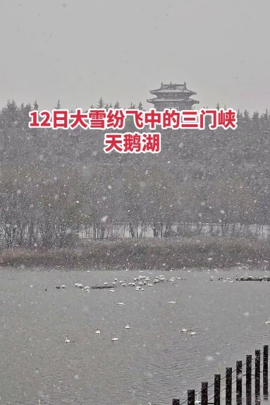 太美了!大雪紛飛中的三門峽天鵝湖!