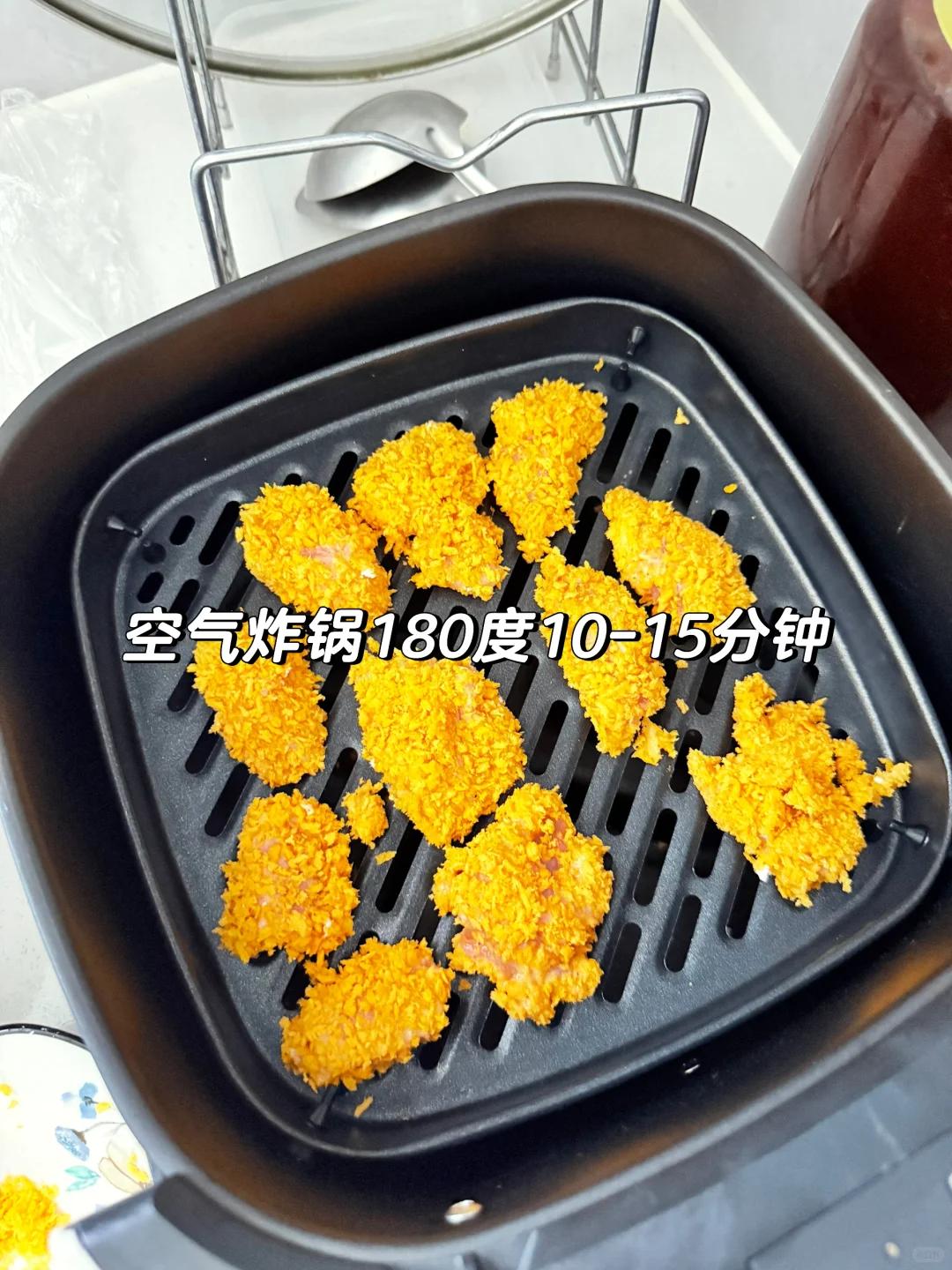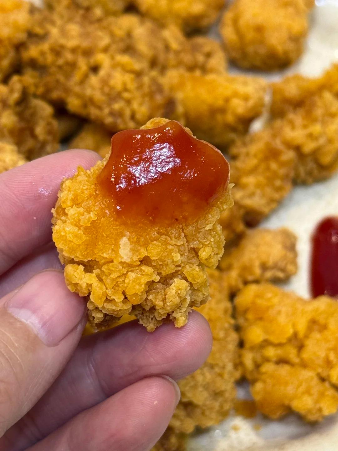 自己做的雞米花沒有多余油脂,雞肉嫩而不柴,咬開帶著淡淡的肉香,孩子抓著吃特別香,搭配番茄醬更對(duì)味,比外賣健康多了。