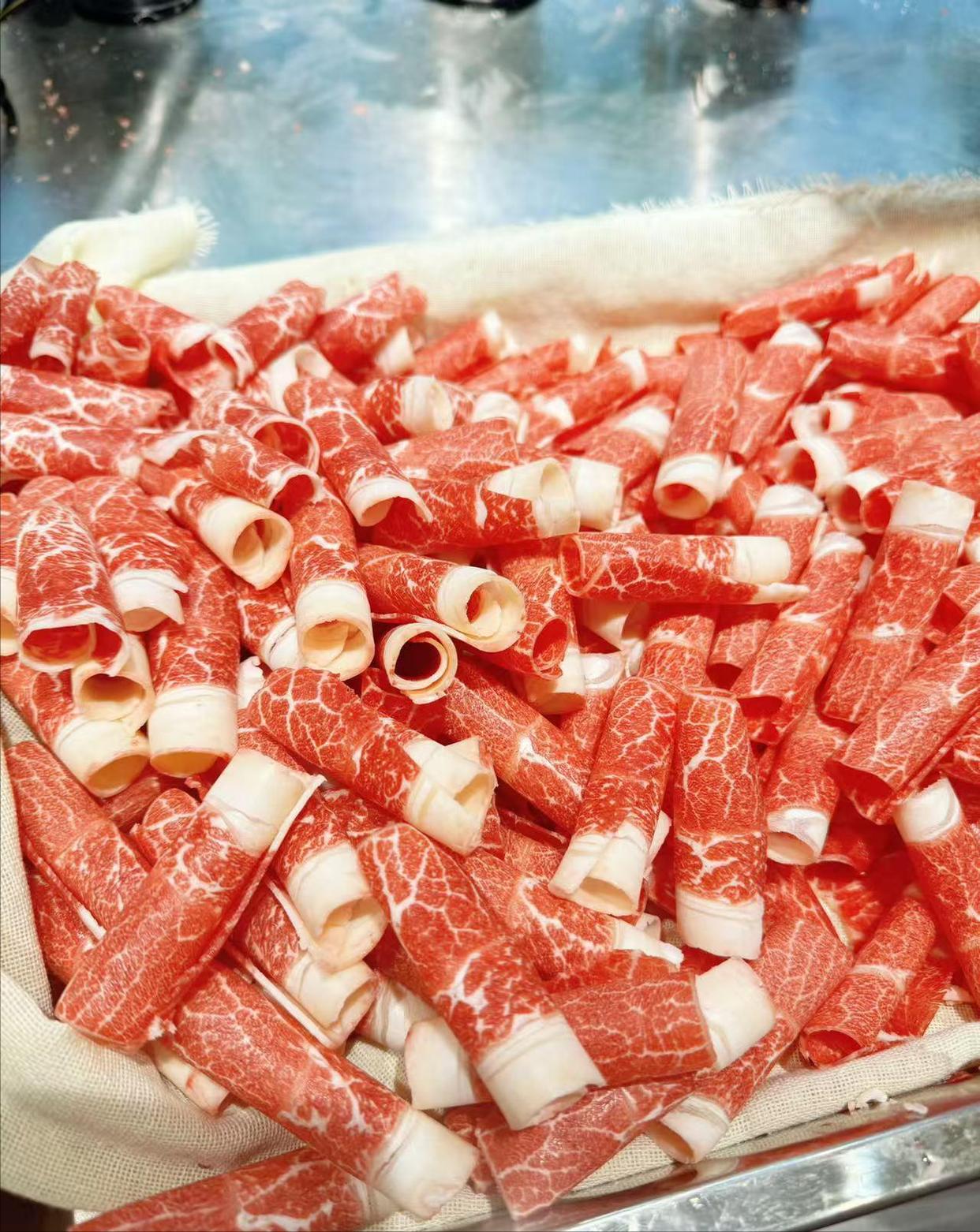燒一鍋開水,放少許料酒,把肥牛卷放進(jìn)去焯十秒,看到肥牛變色就撈出,這樣能去血沫和腥味。