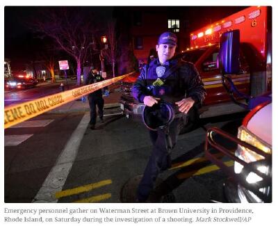 12月13日,在美國羅得島州普羅維登斯,應急人員在發生槍擊事件的布朗大學內工作。