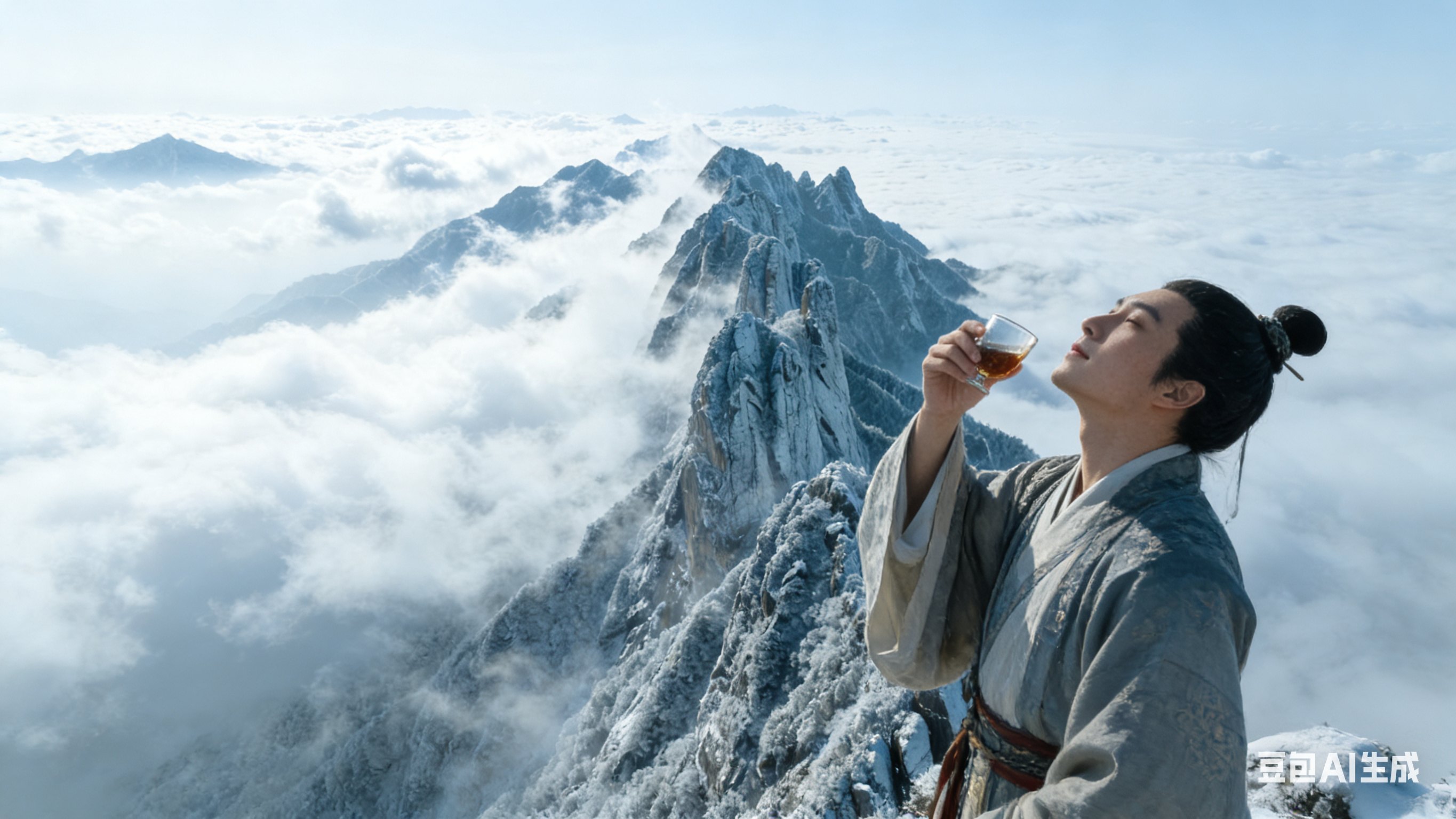 第三句“當(dāng)時天喜遺身世”由景入情,升華心境。“天喜”二字寫盡當(dāng)年觀雪時的狂喜,大雪漫天的澄澈之景滌蕩心靈,讓人暫時忘卻塵世煩憂,達(dá)到“遺身世”的超然境界——忘卻自身境遇與俗世牽絆,唯有天地雪景與滿心歡喜,這份純粹的愉悅,恰是歲月中最珍貴的記憶碎片。