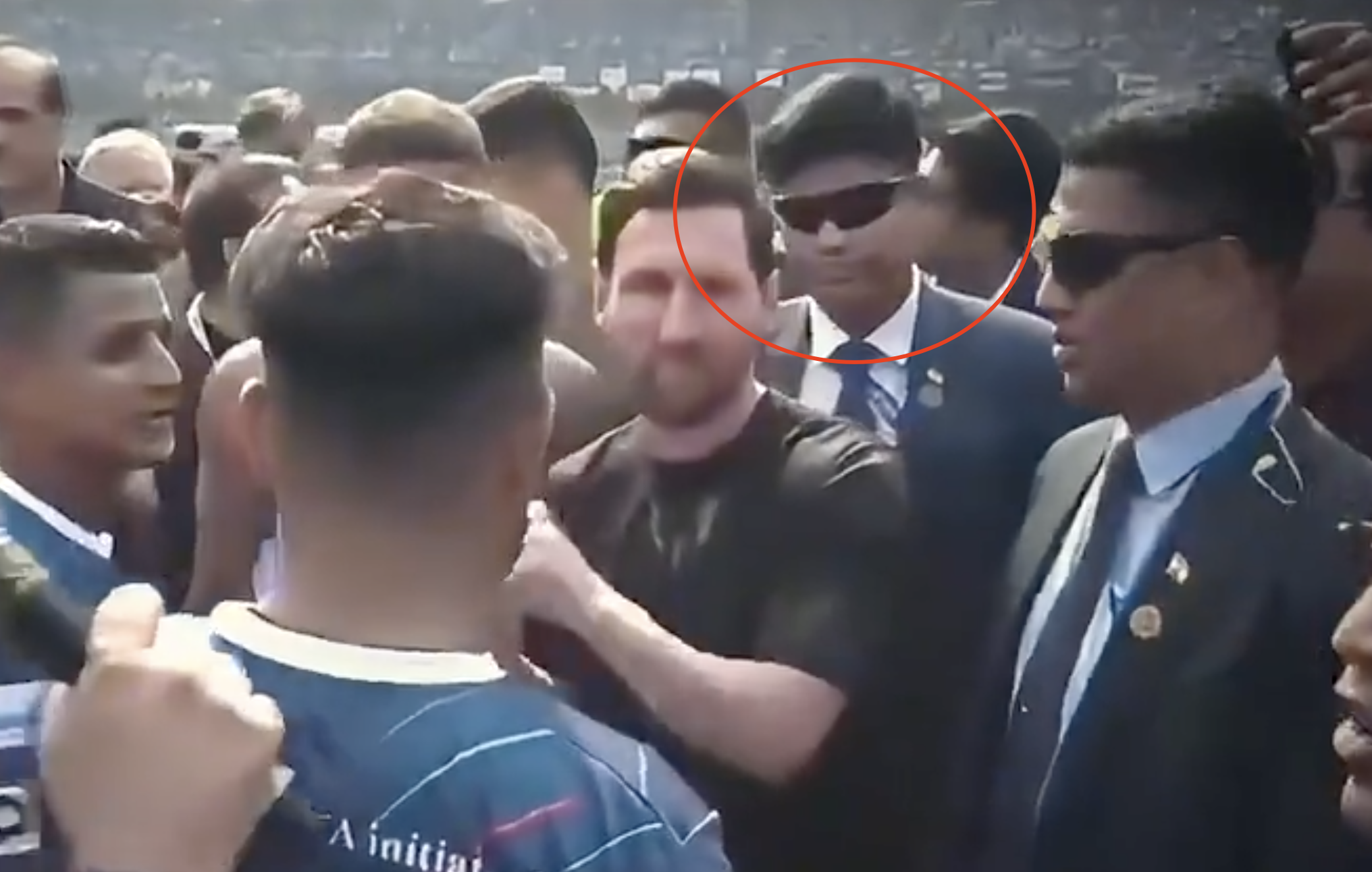 薩塔德魯-杜塔在昨日下午一直陪在梅西的身邊。球場發生騷亂的時候,他戴著墨鏡身處球場內。不過,薩塔德魯-杜塔并沒有辦法制止球迷的騷亂。當梅西離開時,他也一同走人。接著,薩塔德魯-杜塔陪同梅西前往機場,準備一同乘坐專機前往梅西印度行的下一站。