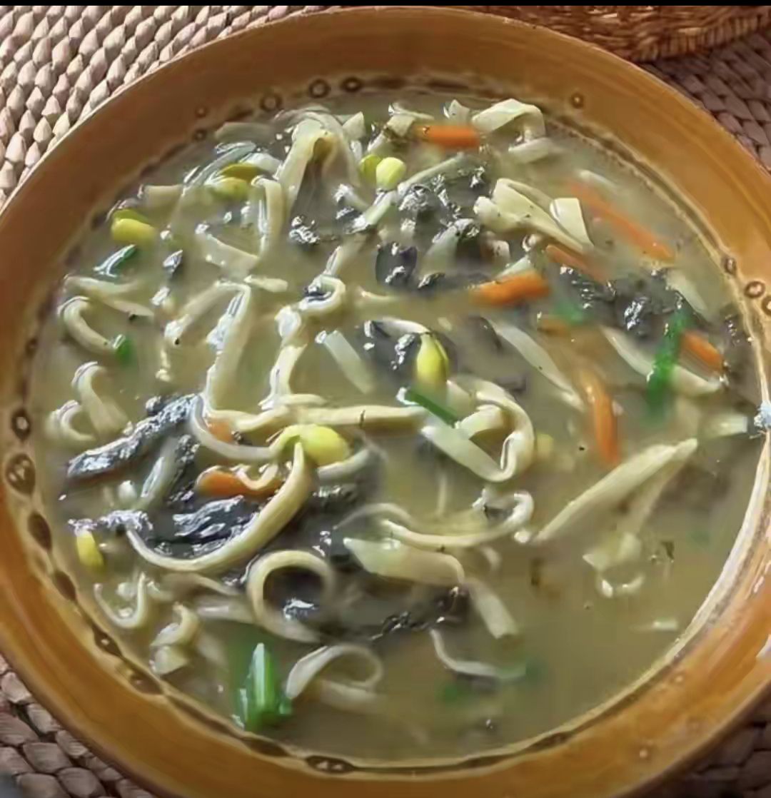 芝麻葉豆面條是河南駐馬店特色的傳統面食。原料以豆面和芝麻葉制作而成,其口感獨特,豆面條具有一定的韌性和嚼勁,搭配上經過腌制和炒制的芝麻葉,味道濃郁。由于芝麻葉的特殊香味與豆面的香氣相互融合,使得面條吃起來香而不膩,面湯濃稠爽滑,喝起來口感豐富,風味獨特。(推薦★這個整個駐馬店市區到處都是,中華路與文明路眼鏡豆面條和練江路明知府燒烤做的比較地道)