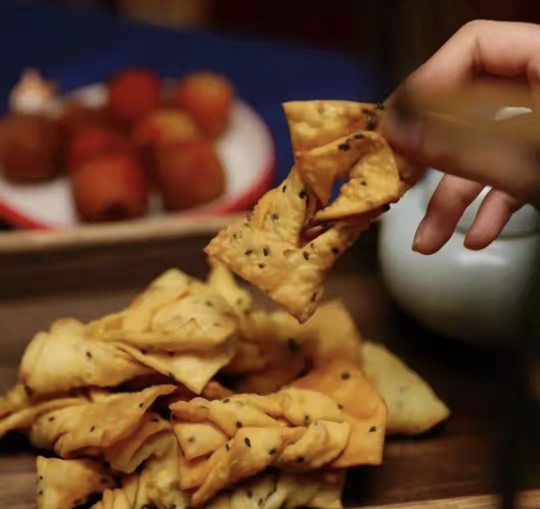 芝麻巧果是駐馬店地區的傳統美食之一。在駐馬店地區的傳統節日和民俗活動中,芝麻巧果一直扮演著重要的角色。它通常在七夕節、中秋節等節日制作和食用,寓意著美好和團圓。其口感酥脆,香氣撲鼻。芝麻的香味與面粉的麥香相互融合,再加上糖的甜味和雞蛋的香味,使巧果的味道更加豐富。巧果的形狀小巧玲瓏,色澤金黃誘人,是一道既美味又美觀的傳統小吃。(推薦★中原鋪子、育紅巷綠豆酥))