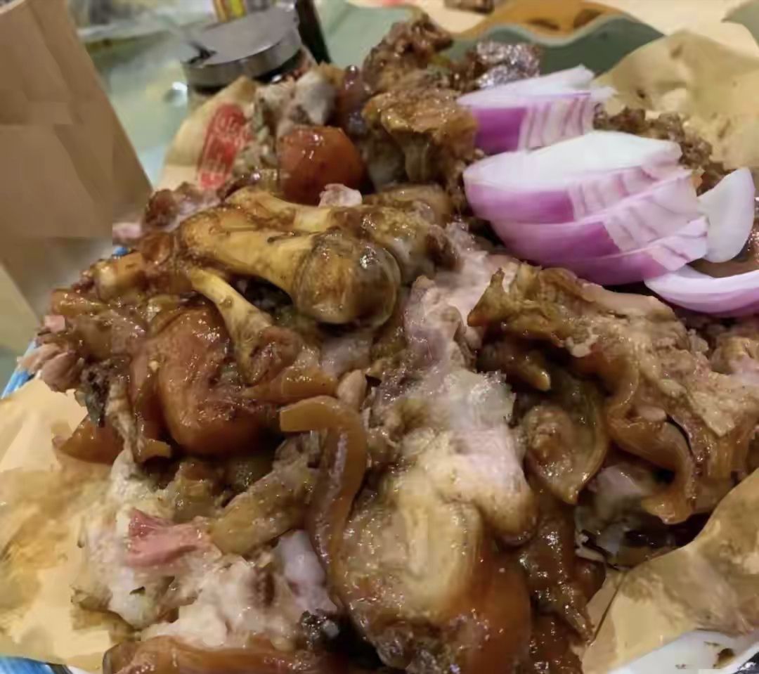 塔橋豬蹄是河南省駐馬店市上蔡縣的傳統風味小吃。其起源于上世紀60年代,據說是塔橋人從一名老中醫手中得到鹵制豬蹄的秘方,由20余種中草藥和10多種味料配制而成。豬蹄膠質豐富,蹄筋勁道爽口,蹄皮入口即化。其口感肥而不膩、色香味俱佳,吃起來麻辣鮮香。釋放出令人陶醉的鮮嫩滋味。(推薦★