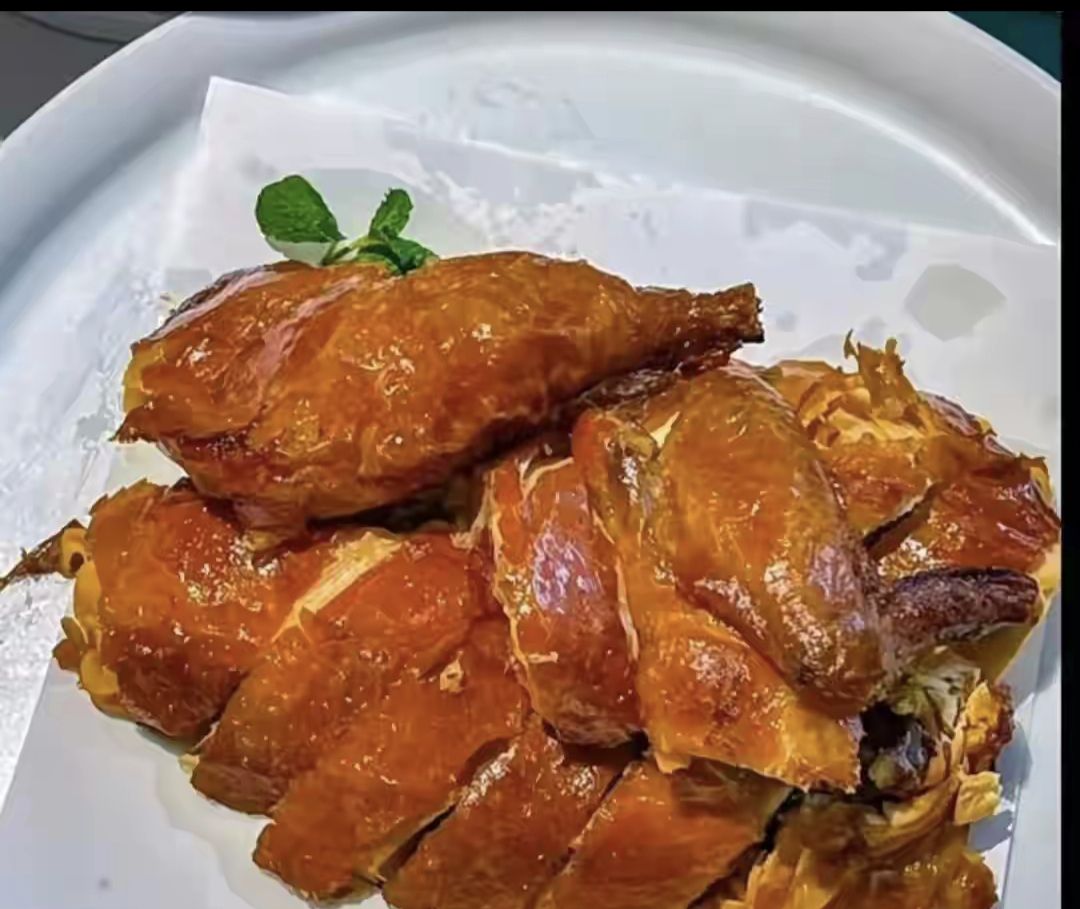 韓集蔣老婆脆皮雞是河南省駐馬店市新蔡縣韓集鎮的一道地方特色名吃。起源于清朝光緒年間。食材選用散養一年以上的鮮活土公雞,制作出的雞肉色澤亮麗,雞皮脆而不膩,雞肉鮮香可口,富有嚼勁。由于使用多種秘制的中草藥調味品搭配,使得雞肉的味道層次豐富,香氣撲鼻。具有壯氣血、補虛勞、益脾胃的功效,是老少皆宜的美食。(推薦★解放路二巷水利局家屬院門口)