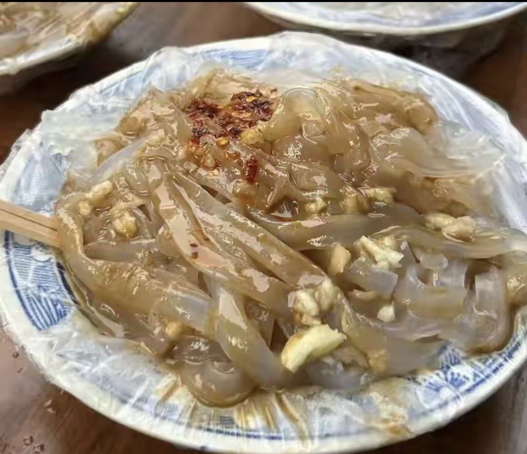 1、確山涼粉確山涼粉是河南駐馬店確山縣的特色美食。具有上千年的歷史。以當地特有的鐵豌豆為原料制作而成,口感爽滑細膩,彈性恰到好處。它具有一種獨特的清香,微帶一點豌豆的天然甜味。涼粉加入辣椒油、醋、蒜末、芝麻醬等調料,涼拌食用。味道酸辣可口,十分開胃。同時,確山涼粉還具有清熱解毒、涼血的功效,適合在炎熱的天氣食用。(推薦★風光路一巷霍記涼粉老店)