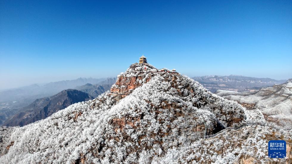 12月13日在河南省濟(jì)源市拍攝的王屋山雪后景觀(無(wú)人機(jī)照片)。