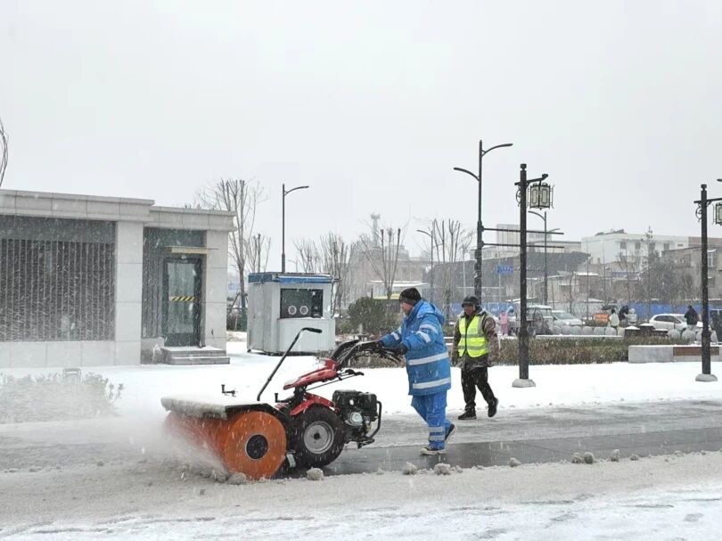區(qū)環(huán)境衛(wèi)生服務(wù)中心密切關(guān)注天氣變化,嚴(yán)格落實(shí)“以雪為令”工作機(jī)制,迅速啟動(dòng)冬季鏟雪除冰應(yīng)急預(yù)案,統(tǒng)籌組織人員、車輛開展全域清雪行動(dòng)。此次行動(dòng)共出動(dòng)灑水車、雪滾車、撒布機(jī)等各類機(jī)械除雪設(shè)備10余臺(tái),組織保潔人員450余名,配發(fā)推雪板、雪鏟、鐵鍬等人工除雪工具500余把,通過(guò)“機(jī)械+人工清掃”相結(jié)合的方式,全力清除道路積雪積冰,保障轄區(qū)道路環(huán)境整潔有序。