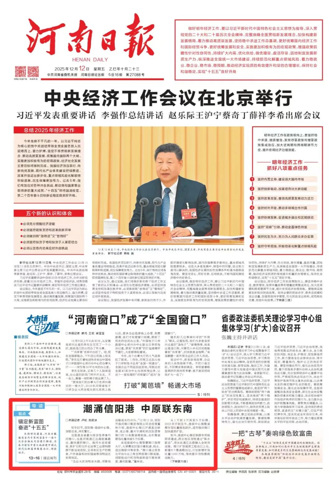 今天(12月12日)《光明日?qǐng)?bào)》《河南日?qǐng)?bào)》等中央省級(jí)主流媒體紛紛關(guān)注信陽(yáng),在重要版面刊發(fā)重點(diǎn)報(bào)道。