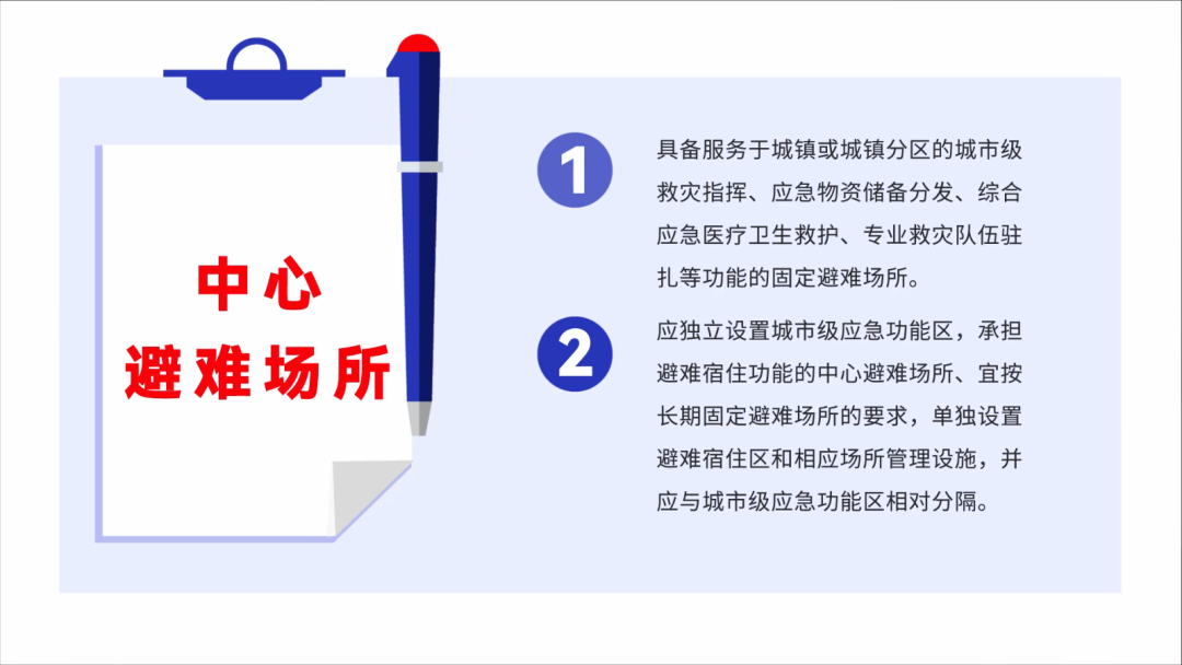 應急避難場所是為應對各類突發事件,經政府規劃、建設或改造,用于群眾避險安置的安全場所,避難場所按照其配置功能級別、避難功能和開放時間,可劃分為緊急避難場所、固定避難場所、中心避難場所。