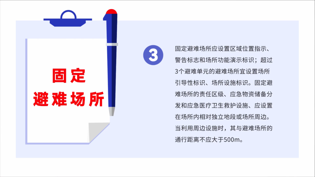 熟悉居住地的周圍環境,平時注意了解、熟悉所在地理位置、應急避難路線圖、避難場所出入口設置、應急避險指示標識以及避難場所設施使用注意事項等。