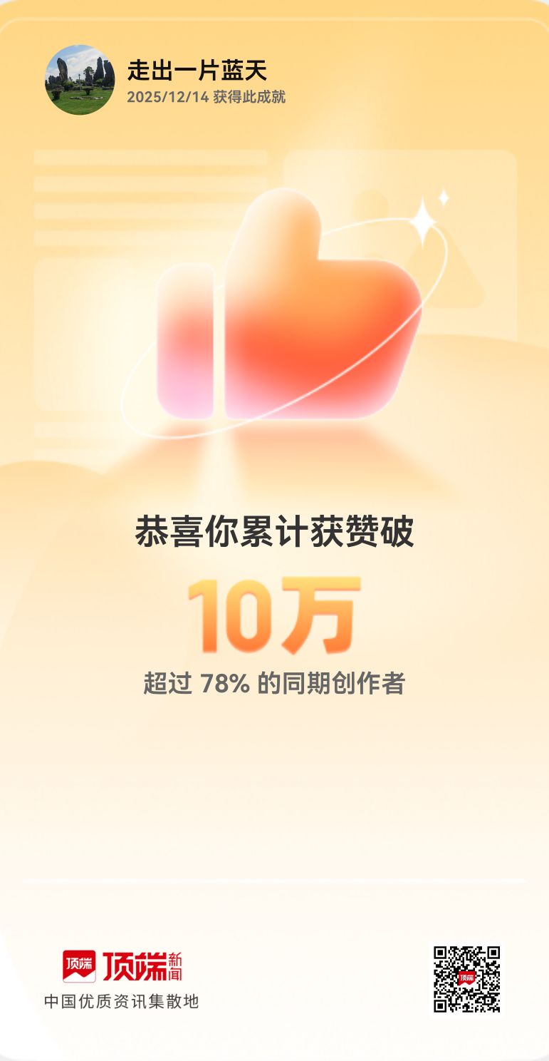 今天習(xí)慣性打開我的首頁,第一眼看到的是獲得10萬的點贊量。這本是流程中的尋常景象,卻讓我心頭微微一震。數(shù)字背后,是思想的共鳴,是價值的認(rèn)同,更是持續(xù)輸出帶來的正向反饋。它提醒我,每一次真誠的分享都可能觸動他人,哪怕只是微小的啟發(fā)。這份認(rèn)可激勵我更加嚴(yán)謹(jǐn)?shù)貙Υ恳欢挝淖郑眯拇蚰ッ恳粋€觀點,力求在傳遞信息的同時,也能激發(fā)思考、帶來力量。于是,我再次打開文檔,刪去浮于表面的詞句,反復(fù)推敲段落間的邏輯關(guān)聯(lián),試圖讓每一個觀點都像錨點般扎實。想起曾為一個典故查閱數(shù)十篇文獻(xiàn),只為確保&描述的準(zhǔn)確;也曾在深夜反復(fù)誦讀文字,琢磨語氣的輕重——這些旁人看不見的較真,此刻都成了回應(yīng)這份點贊的底氣。或許真正的分享從不是單向的輸出,而是當(dāng)我們捧著一顆真心去碰撞世界時,那些被點燃的星火,終將匯聚成照亮彼此的光。