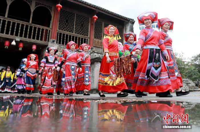 圖為民俗巡游現場。龔普康 攝