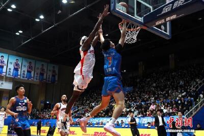 圖為四川男籃隊員段睿騏面對對方外援封蓋滯空上籃。中新社記者 呂楊 攝