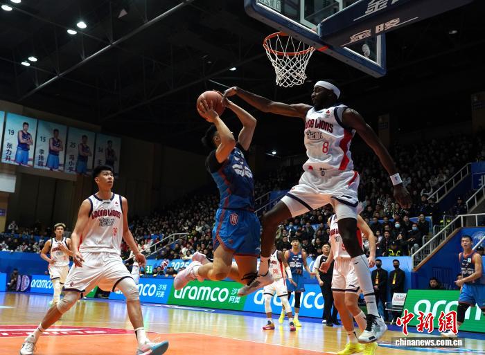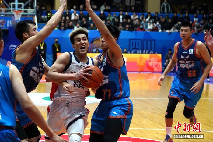 圖為廣州男籃隊員郭艾倫面對防守強勢突破造犯規。中新社記者 呂楊 攝