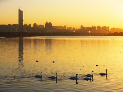 天鵝湖晨曲:青龍湖的破曉圓舞