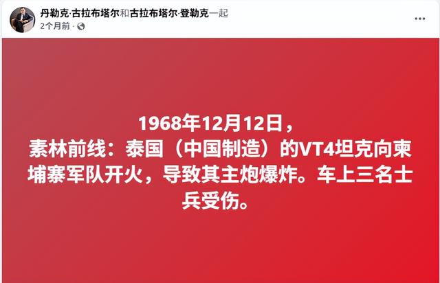 12月13日,泰國和柬埔寨依然打得不可開交,網絡流傳的一段畫面讓中國軍迷捏了把汗:一輛在泰柬邊境參戰的VT-4主戰坦克炮管發生破裂(一些人稱之為炸膛),事情引發關注后泰國陸軍聲稱正在對此事進行技術調查。