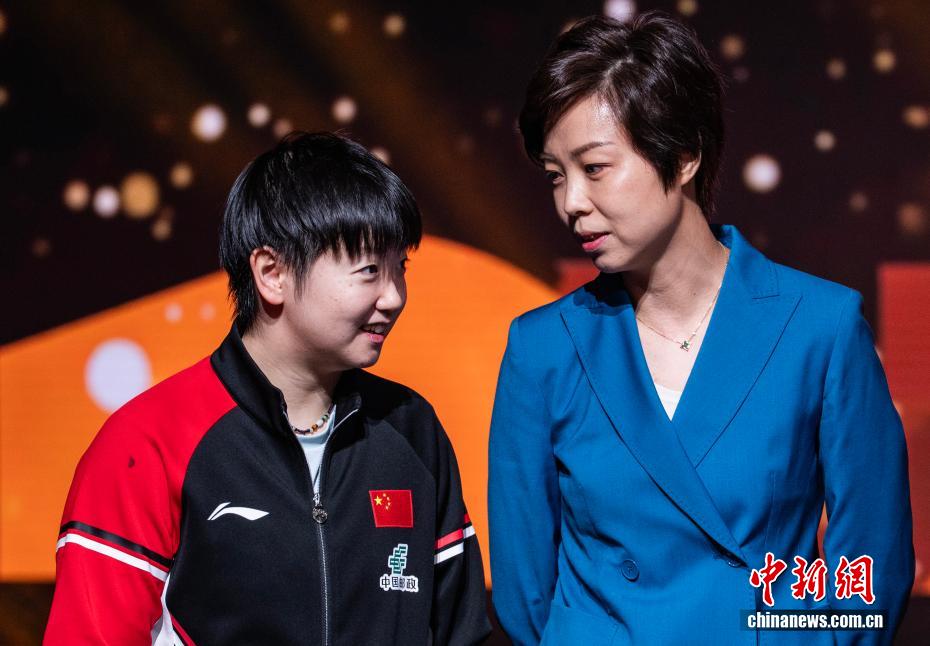 圖為孫穎莎(左)與頒獎嘉賓張怡寧在頒獎儀式期間交流。