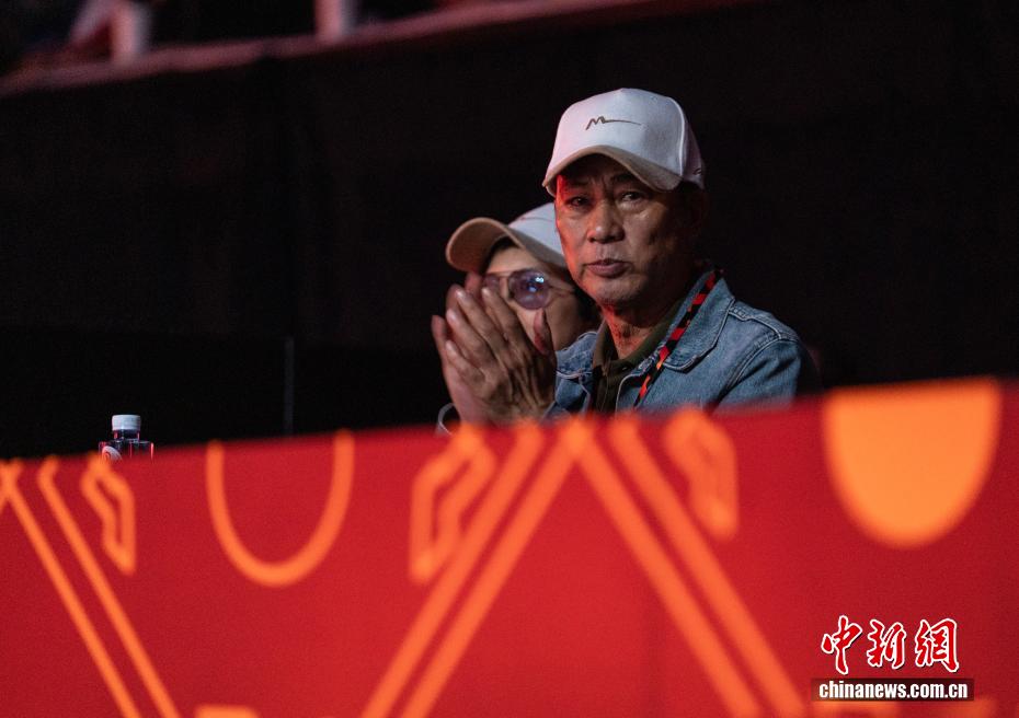 圖為香港演藝明星任達華在現場觀看混雙決賽。
