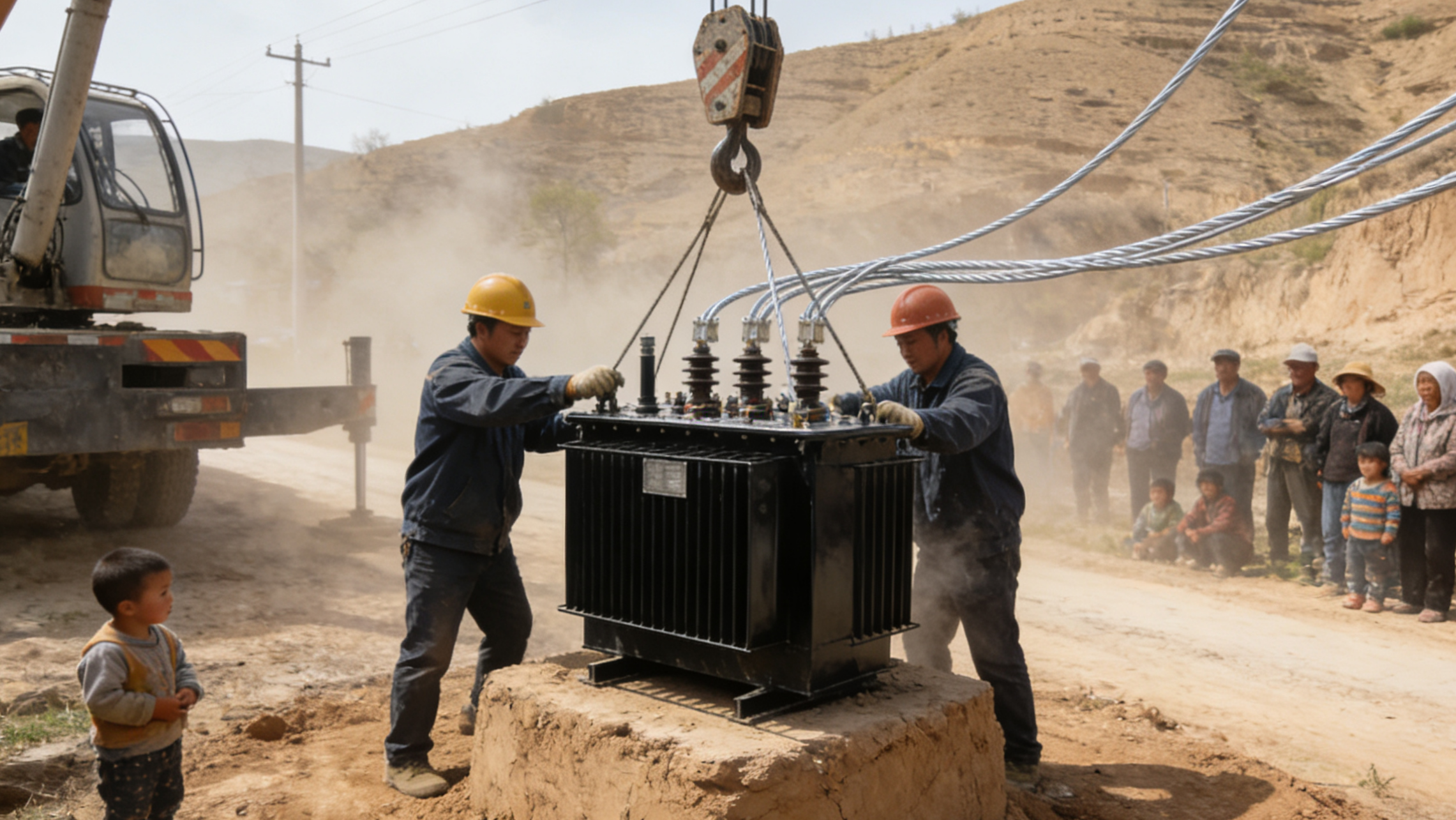 安裝變壓器的那天,天剛蒙蒙亮,縣供電局的車隊(duì)就順著坑坑洼洼的黃土路開了進(jìn)來,塵土飛揚(yáng)著漫過田埂。那臺(tái)大變壓器被粗繩子牢牢固定在卡車上,黑乎乎的外殼閃著金屬光澤,沉甸甸的模樣,看得村民們直咂舌。全村人都涌了出來,男人們擼起袖子主動(dòng)上前幫忙,扛工具、牽電線,女人們抱著孩子站在路邊圍觀,孩子們圍著卡車跑前跑后,嘰嘰喳喳喊著“變壓器來啦!要通電啦!”,歡笑聲在黃土坡上回蕩。在眾人的齊心協(xié)力下,變壓器慢慢被安在了村頭的土臺(tái)墩上,銀灰色的電線順著電線桿牽起來,像一條條銀帶,延伸到家家戶戶的窯洞前。