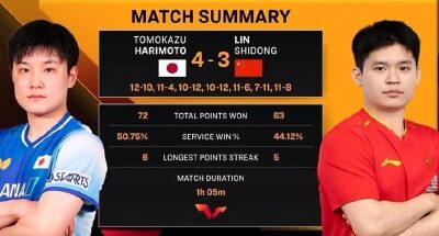 林詩棟負于張本智和,無緣WTT總決賽男單決賽