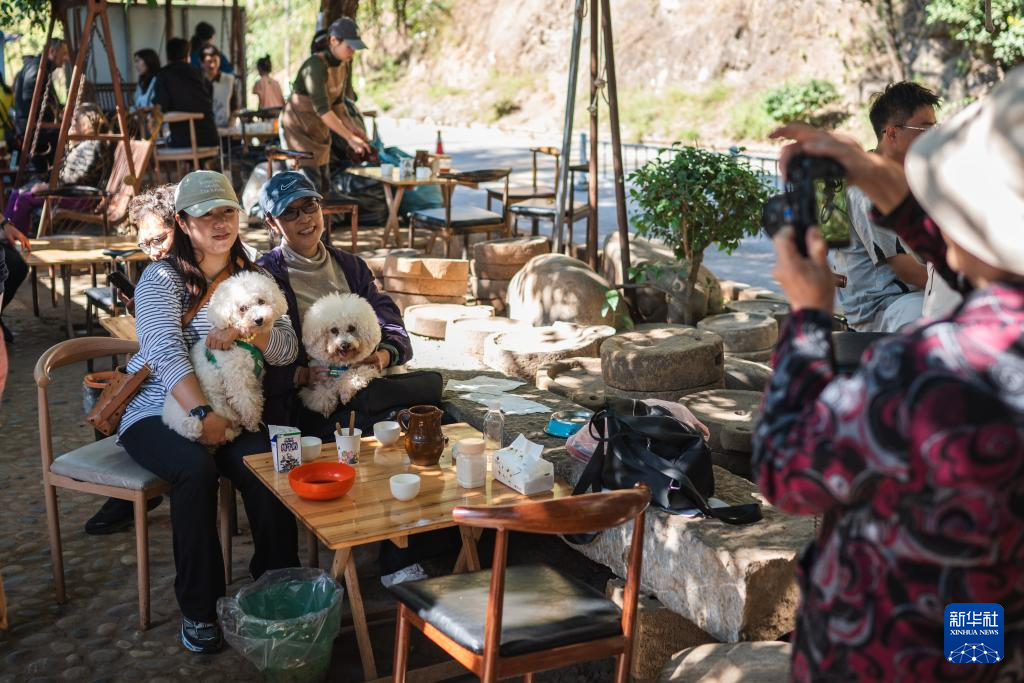 11月15日,顧客在位于云南省保山市隆陽區(qū)芒寬鄉(xiāng)的“路邊咖啡館”拍照留念。新華社記者 王冠森 攝