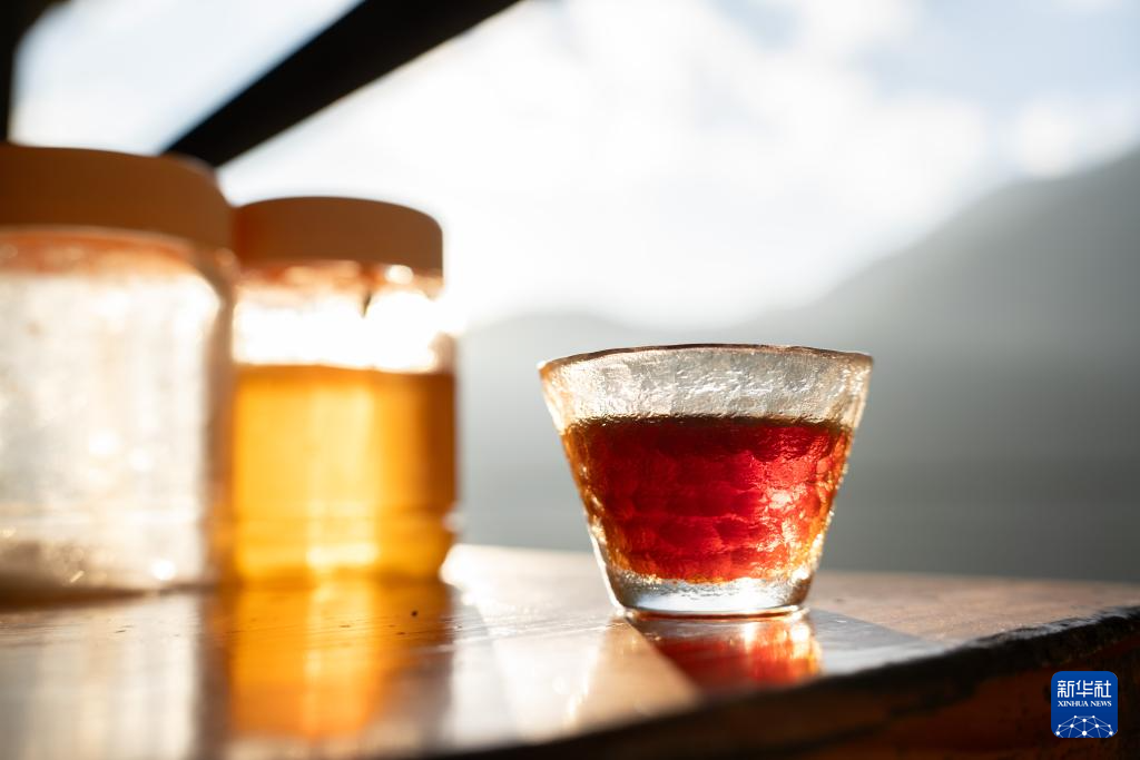 這是11月16日在云南省保山市隆陽區(qū)芒寬鄉(xiāng)“路邊咖啡館”拍攝的李金合制作的蜂蜜和咖啡。新華社記者 高詠薇 攝