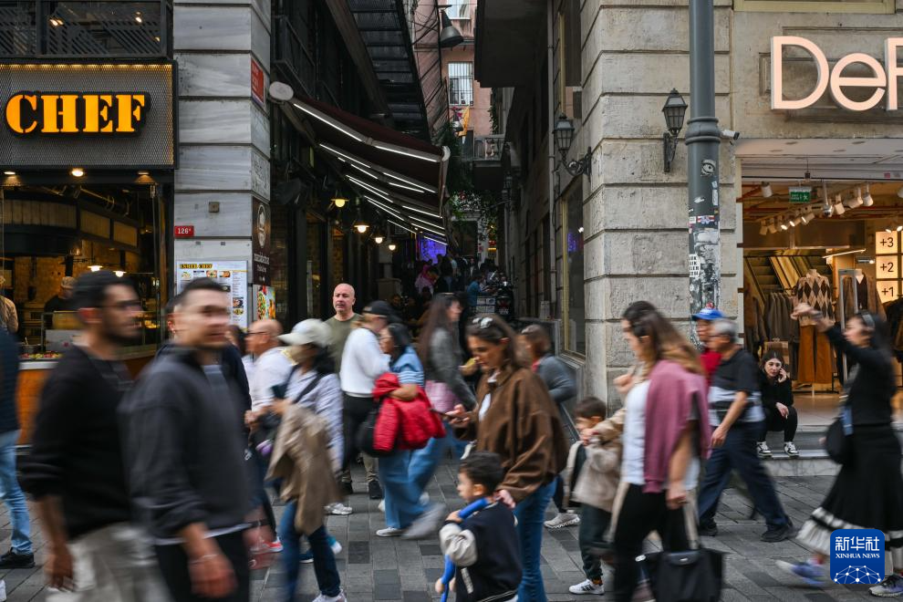 這是11月22日在土耳其伊斯坦布爾獨(dú)立大街拍攝的曼達(dá)巴特馬茲咖啡店所在巷道的入口。新華社記者 劉磊 攝