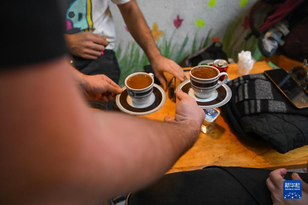 11月22日,在土耳其伊斯坦布爾的曼達(dá)巴特馬茲咖啡店,一名工作人員將做好的咖啡送至顧客處。新華社記者 劉磊 攝